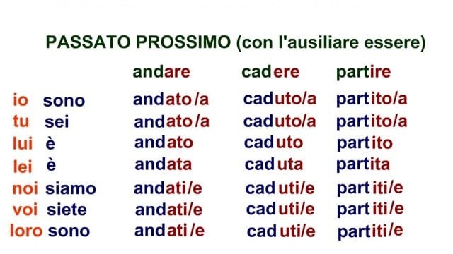 باید دقت داشته باشیم که مثل صرف افعال در زمان گذشته ساده، فعل های حرکتی از ESSERE و فعلهای غیر حرکتی از AVERE استفاده میکنند . دقت کنید که قبلتر تفاوت استفاده از ausiliare یا همان فعل کمکی را در قسمت شاخت زمان گذشته در زبان ایتالیایی توضیح دادیم.