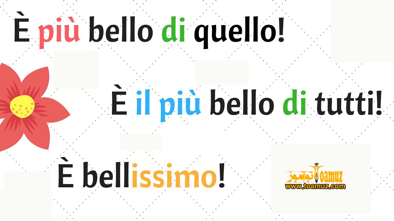 در زبان ایتالیایی برای مقایسه کردن دو موضوع با یکدیگر می توان از عبارت های مقایسه ای la comparazione regolare و یا روش های خاص comparazione particolare استفاده کرد.